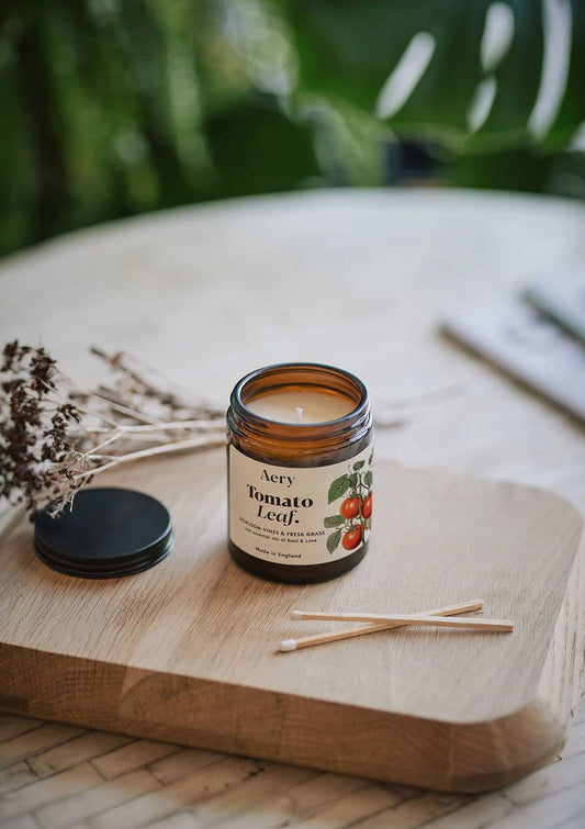 Aery Tomato Leaf Scented Jar Candle - Heirloom Vines and Fresh Grass with Lime Essential oil