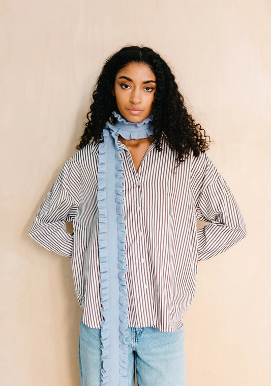 TBCo Merino Wool Skinny Scarf - Blue Ruffle