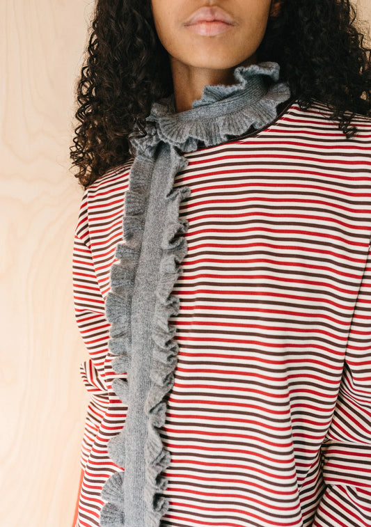TBCo Merino Wool Skinny Scarf - Grey Ruffle
